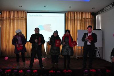 下午,公司還對在過去一年工作中表現突出的優(yōu)秀員工進行了表彰,表彰過程中,穿插了精心準備的互動游戲,游戲者滑稽的表演屢屢引得觀眾哄堂大笑,現場充滿了歡樂的氣氛。