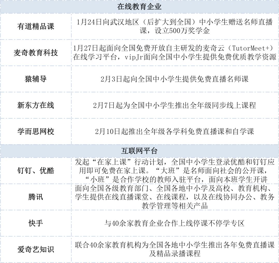 疫情期間在線教育相關企業(yè)推出的服務