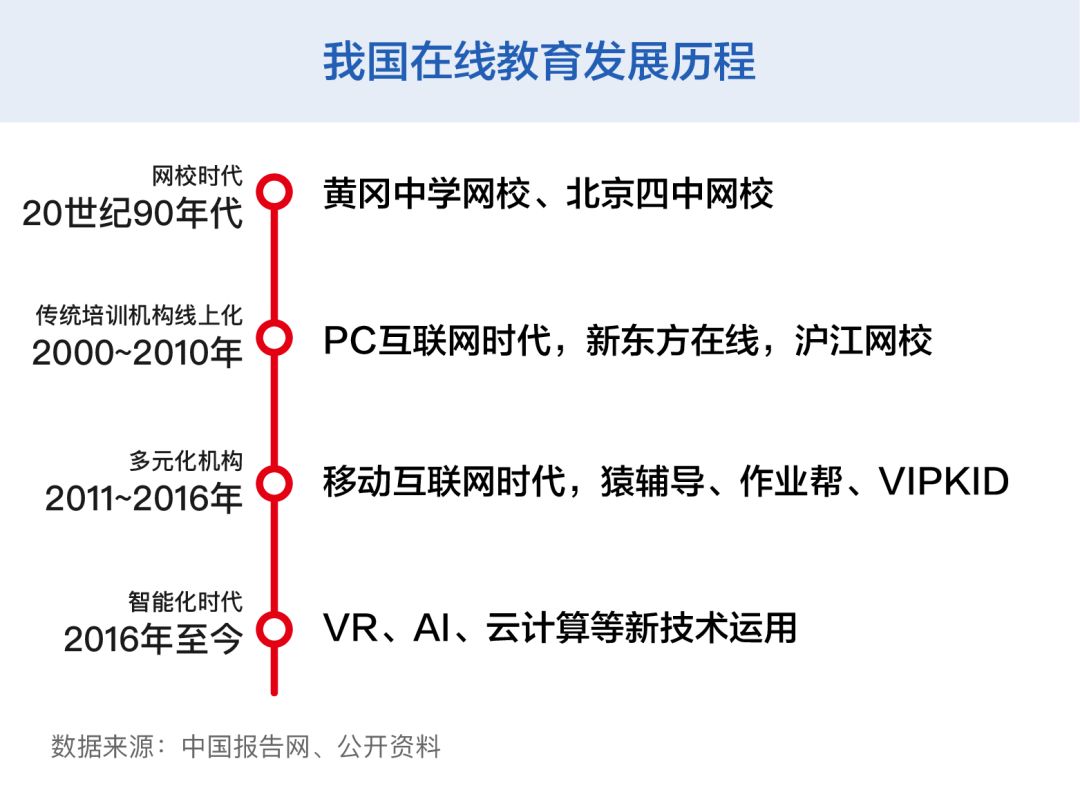 在線教育并不是什么新鮮事。20世紀90年代末,互聯(lián)網(wǎng)進入中國。當時黃岡中學、北京四中等名校開辦的網(wǎng)絡學校拉開了中國網(wǎng)絡教育的序幕,“互聯(lián)網(wǎng)+教育”模式得到認可。